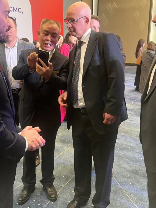 傍晚时分,华灯初上,使馆内洋溢着温馨而庄重的氛围。招待会在悠扬的弦乐四重奏中拉开帷幕。彼得·威尔逊大使发表了热情洋溢的致辞,他首先对各位嘉宾的到来表示衷心感谢,并分享了自己初到中国一个多月来的感受。他回顾了中英两国建交以来的友好交往历史,特别提到近年来在经贸、教育、科技等领域的合作成果。大使先生表示,作为新任驻华大使,他将致力于推动两国关系迈向更高水平。“中国的发展速度和现代化成就给我留下了深刻印象,中国是英国重要的合作伙伴,我期待在任期内能够见证更多合作成果的诞生。”威尔逊大使的讲话赢得了在场嘉宾的热烈掌声。他强调,中英两国作为全球重要经济体,在数字经济、金融服务、科技创新等领域的合作前景广阔,他期待与中国优秀企业家携手,共同探索新的合作机遇,共同开拓更广阔的合作空间。