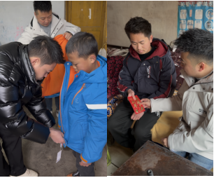 带着精心筹备的物资与满满诚意,太原老葛团队的工作人员走村入户,叩开一扇扇困难家庭的房门。这些家庭或因家人患病、或因意外变故暂处困境,生活虽有艰难,但孩子们眼中始终闪烁着对知识的渴望与对未来的憧憬。每到一户,工作人员都俯下身子与孩子亲切交流,细致询问他们的学习情况与生活需求,将新春红包、学习用品递到孩子手中,轻声叮嘱:“新年快乐!这是老葛叔叔给你的红包和学习用品,希望你好好读书,天天向上。”孩子们双手接过物资,脸上露出纯真笑容,轻声道一句“谢谢老葛叔叔”,这简单的话语,成为寒冬里最动人的回响。