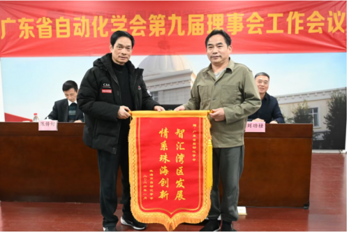 深化区域联动,共促湾区发展会议现场举行赠旗仪式,珠海市自动化学会向广东省自动化学会赠送定制锦旗,感谢学会在区域产业联动中的引领作用。刘奕华理事长与珠海市自动化学会黄宝山理事长共同完成仪式,双方表示未来将继续携手各地市学会,凝聚行业智慧,推动粤港澳大湾区自动化产业协同创新。